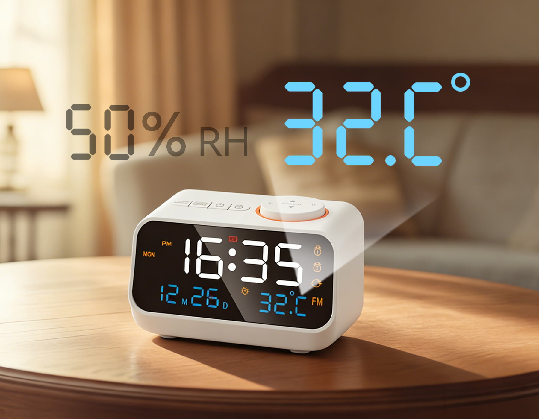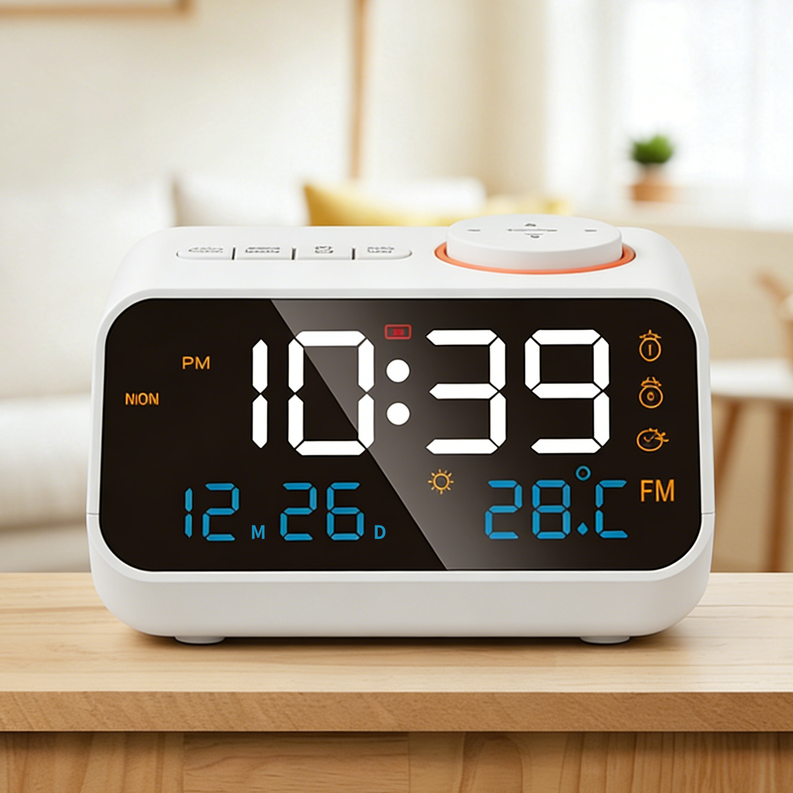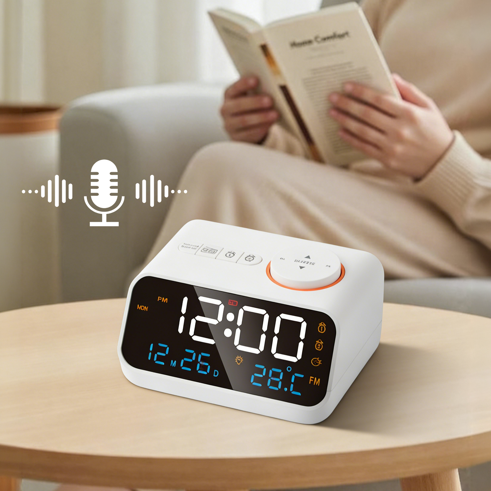 The large screen displays time, day, date, temperature, and humidity all at once, making information clear and easy to read. Whether you’re waking up, planning your day, or checking indoor conditions, you can quickly access essential data, keeping your daily life organized and comfortable.