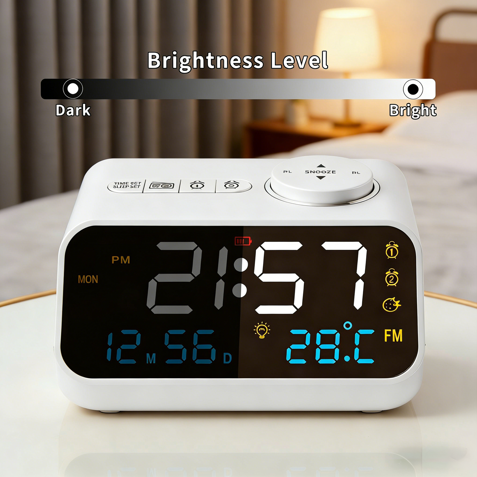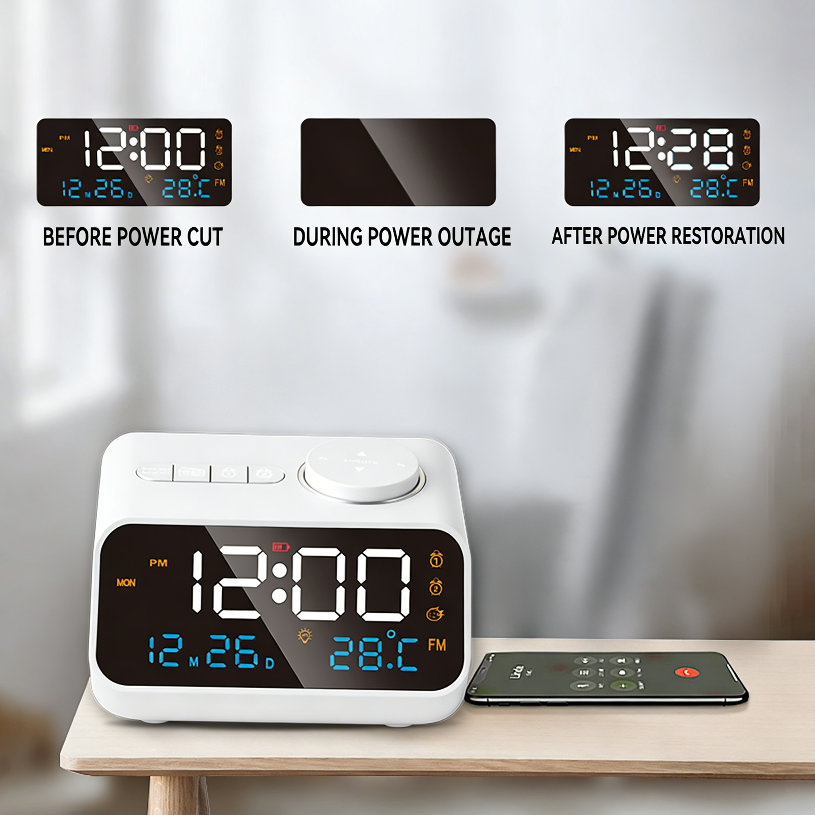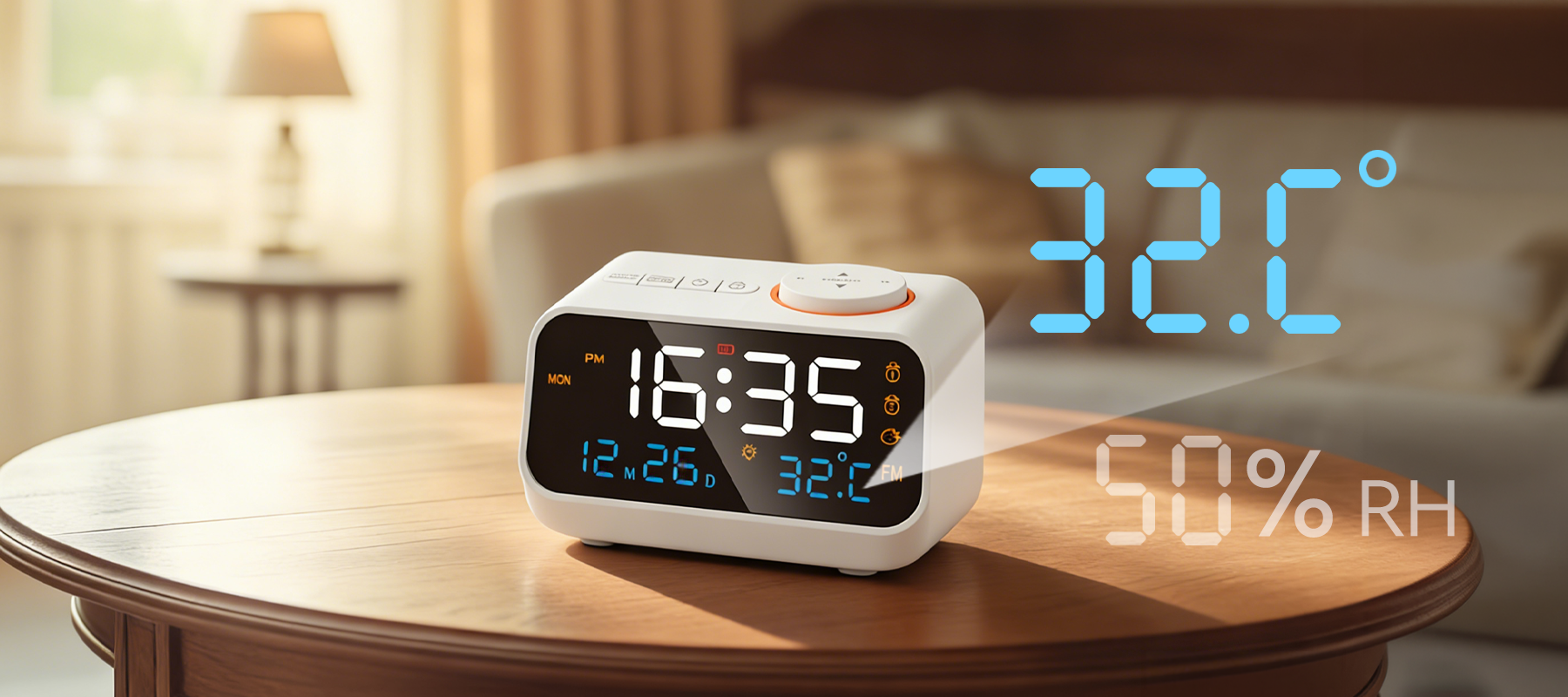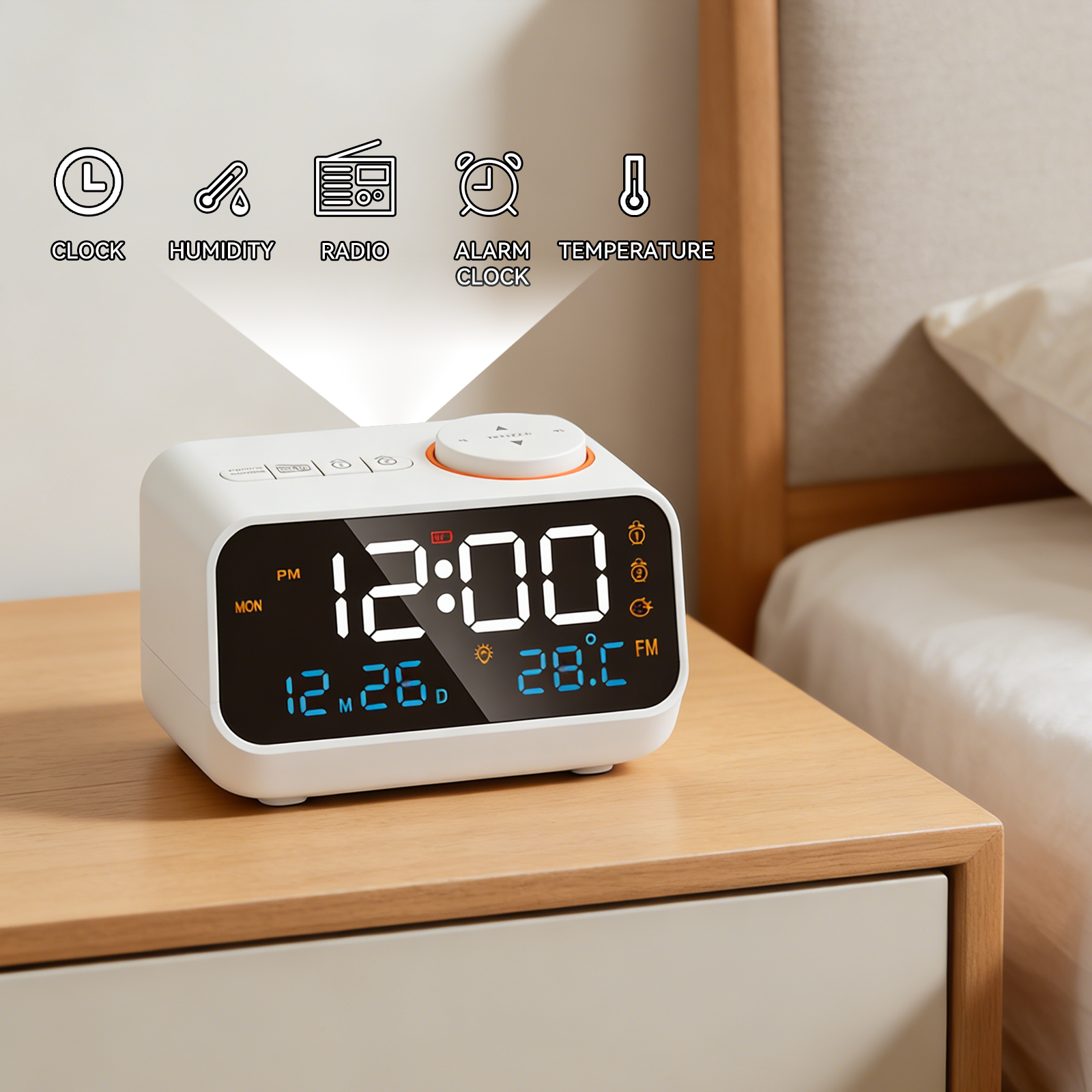 The large screen displays time, day, date, temperature, and humidity all at once, making information clear and easy to read. Whether you’re waking up, planning your day, or checking indoor conditions, you can quickly access essential data, keeping your daily life organized and comfortable.