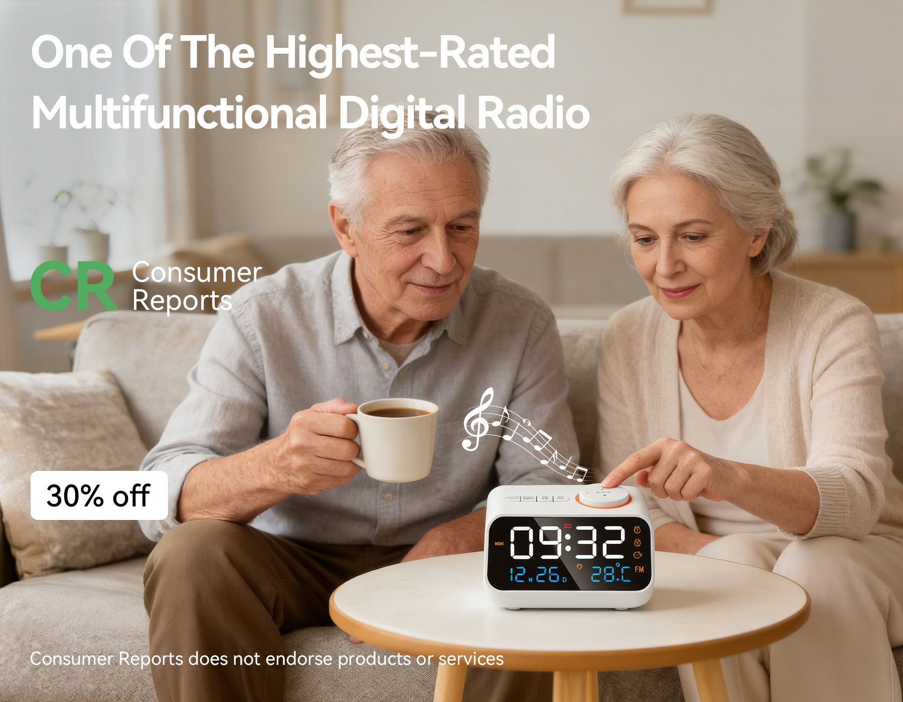 - Dual Alarms + Radio Alarm - Schedule your day efficiently and never miss important times