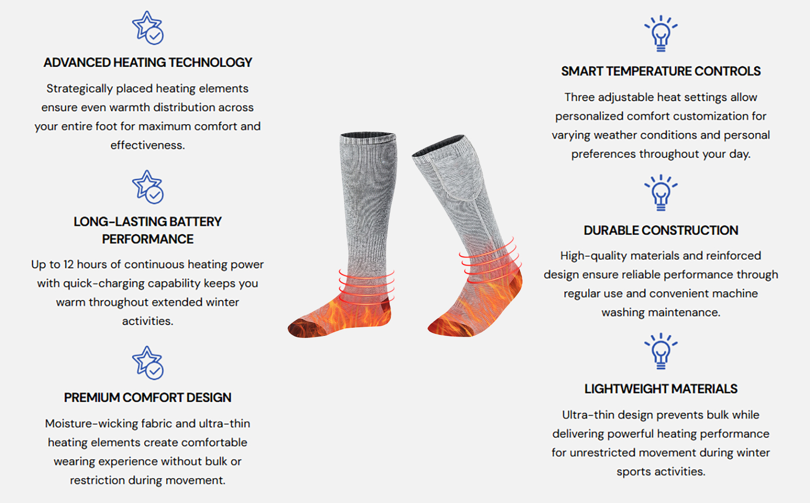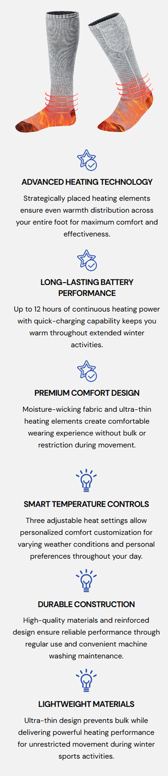 These aren't just warmers; they are comfortable, high-performance socks that deliver smart, precise temperature control (104°F-122°F), heating up fast and maintaining stable, long-lasting warmth. Plus, the fully washable design means you get to enjoy the ultimate convenience and cutting-edge technology right on your feet.
